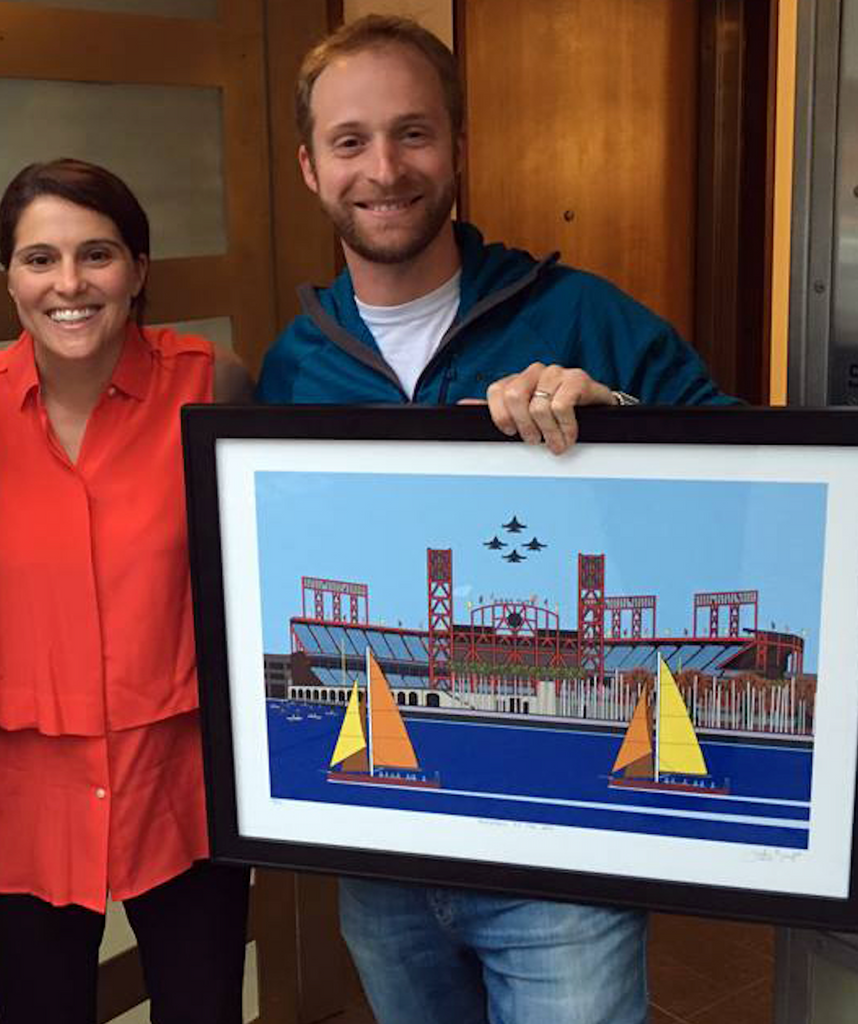 I had my eye on this piece years ago when we lived on Lombard Street. Fast forward to our 6th wedding anniversary, my husband surprised me with John Kraft personally handing me a signed canvas in our home! To make it even more special, our baby is enamored by the painting, and it can soothe her at even her fussiest of times.